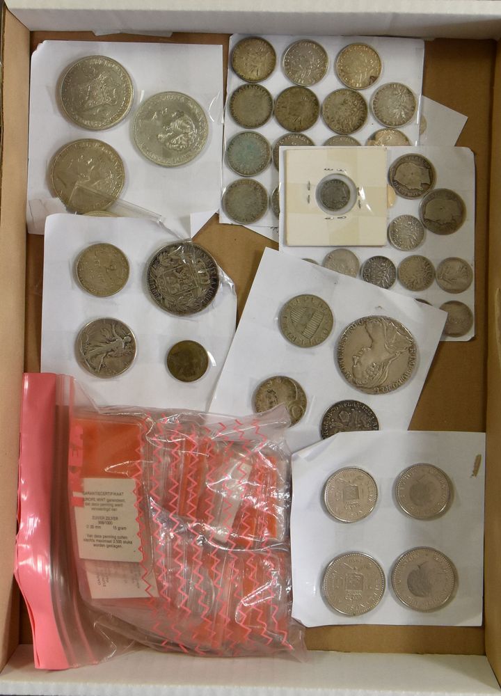 325 imageCOINS: France, Oosterwijk, USA, Belgium, Netherlands Antilles, Netherlands, 623g pure silver, details with lot(Image 1)