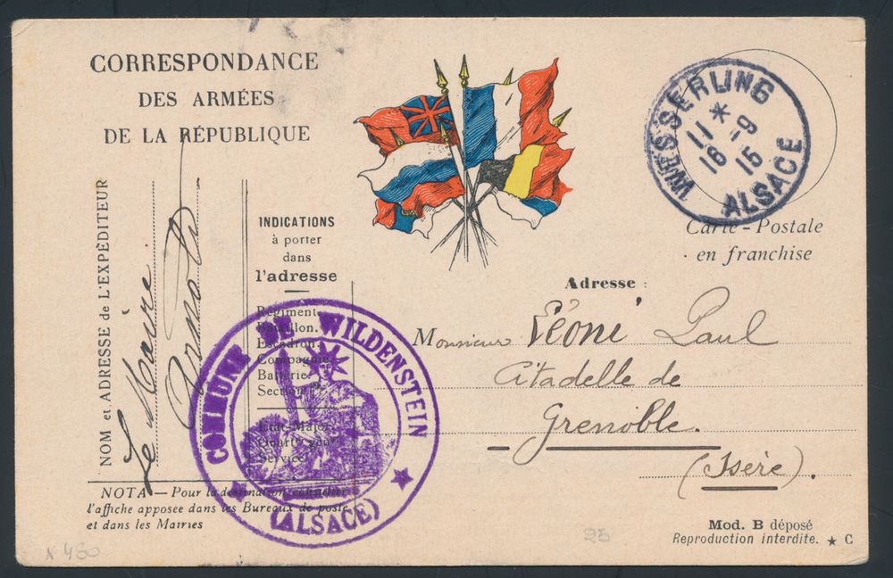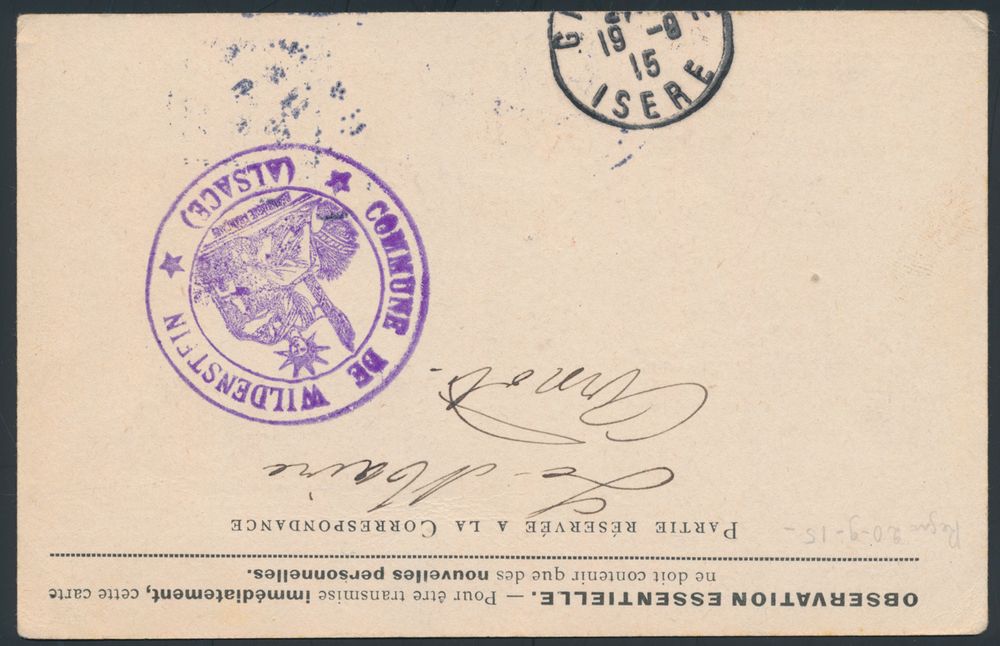 3429 image1915 Military card from Wesserung to Grenoble with 2 censorship marks, Wildenstein Alsace, vf(Image 1) (Image 2)