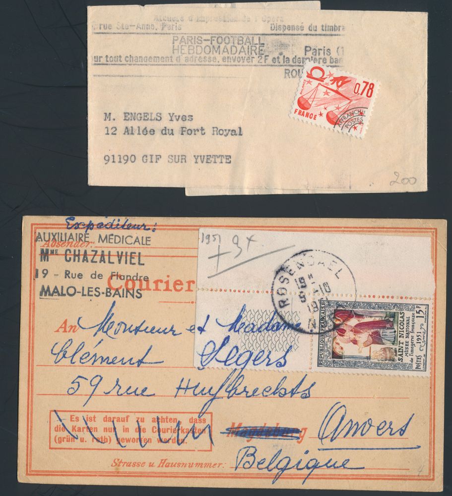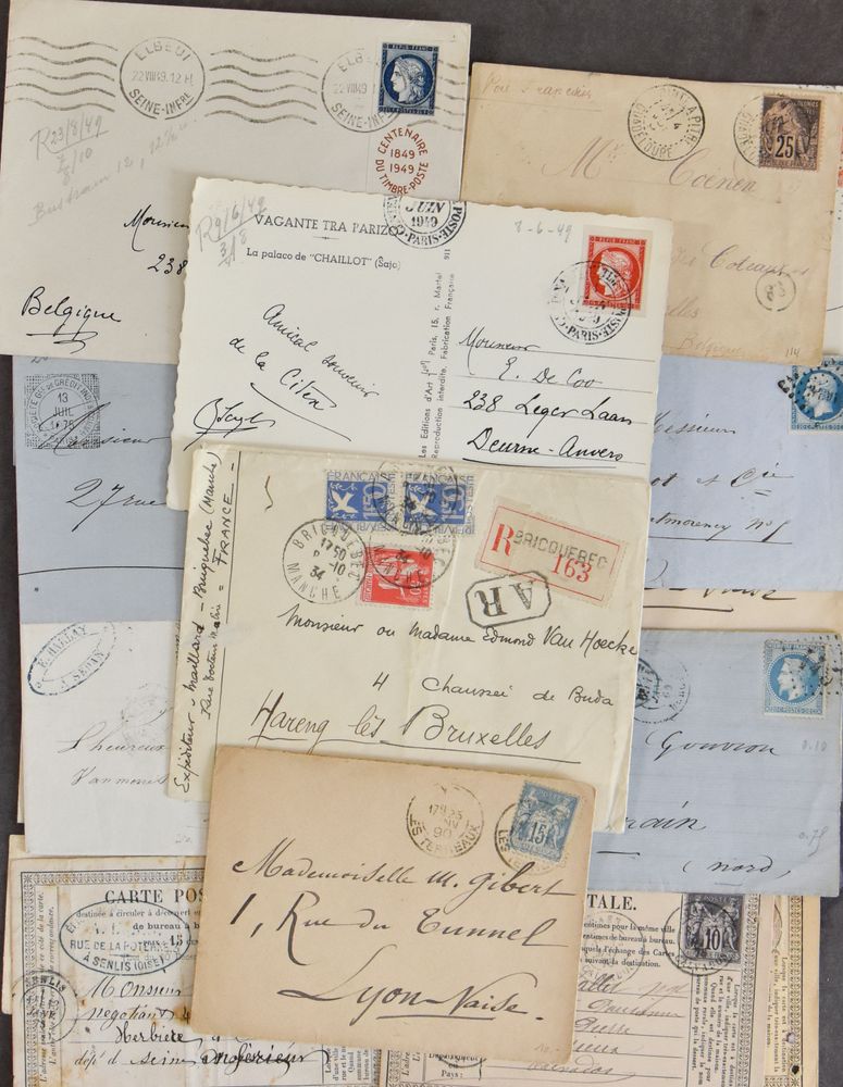 3422 image1855/1949 accumulation of 19 postal items including a nice R-letter with Yv. n° 294 (2x) to Belgium, also letter from Guadeloupe to Belgium, almost all classic, vf/f(Image 1) (Image 2) (Image 3)