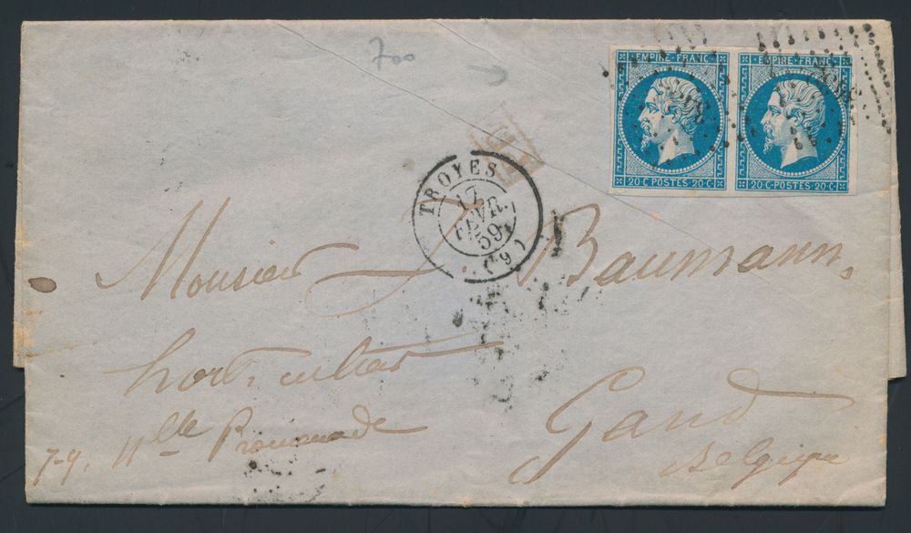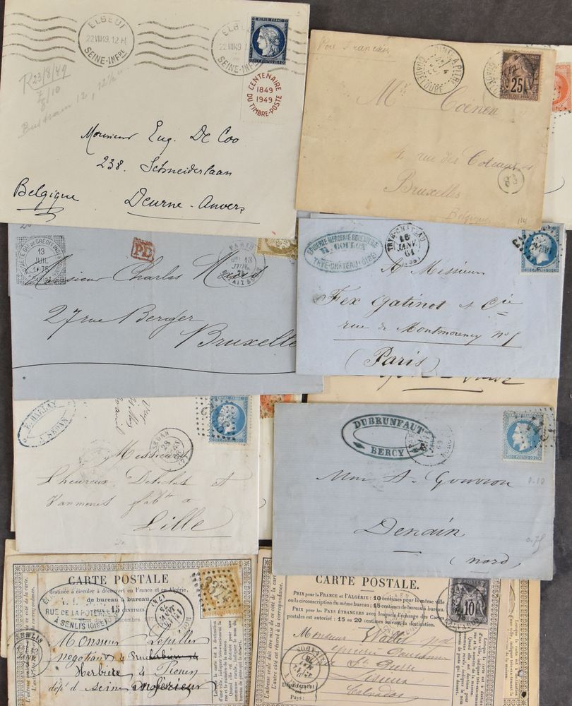 3423 image1855/1864 Nice accumulation of letters to Belgium and elsewhere (including 2 items from England to France) with varied postage (17 items), vf/f(Image 1) (Image 2) (Image 3)