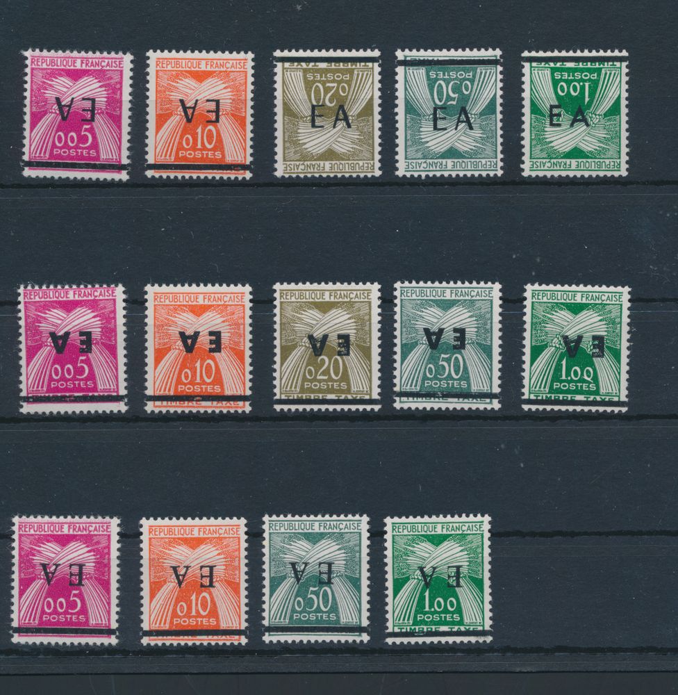 3436 nh imagePenalty postage n° 54/58 "1962 - stamps France" with overprints "EA" in 3 types, all with inverted overprint, 3 sets complete, Michel lists 1 type, vf (Catalogue value €295 for the set)(Image 1)