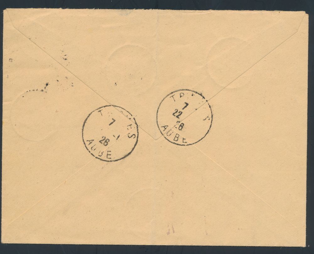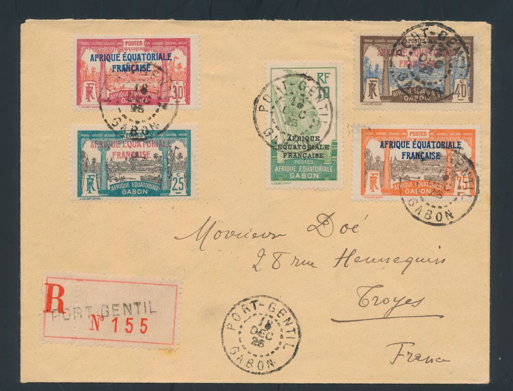 3440 image1925 Gabon, N° 92, 96, 97, 100 and 104 on registered letter, sent on 18 December 1925 to France, vf(Image 1) (Image 2)