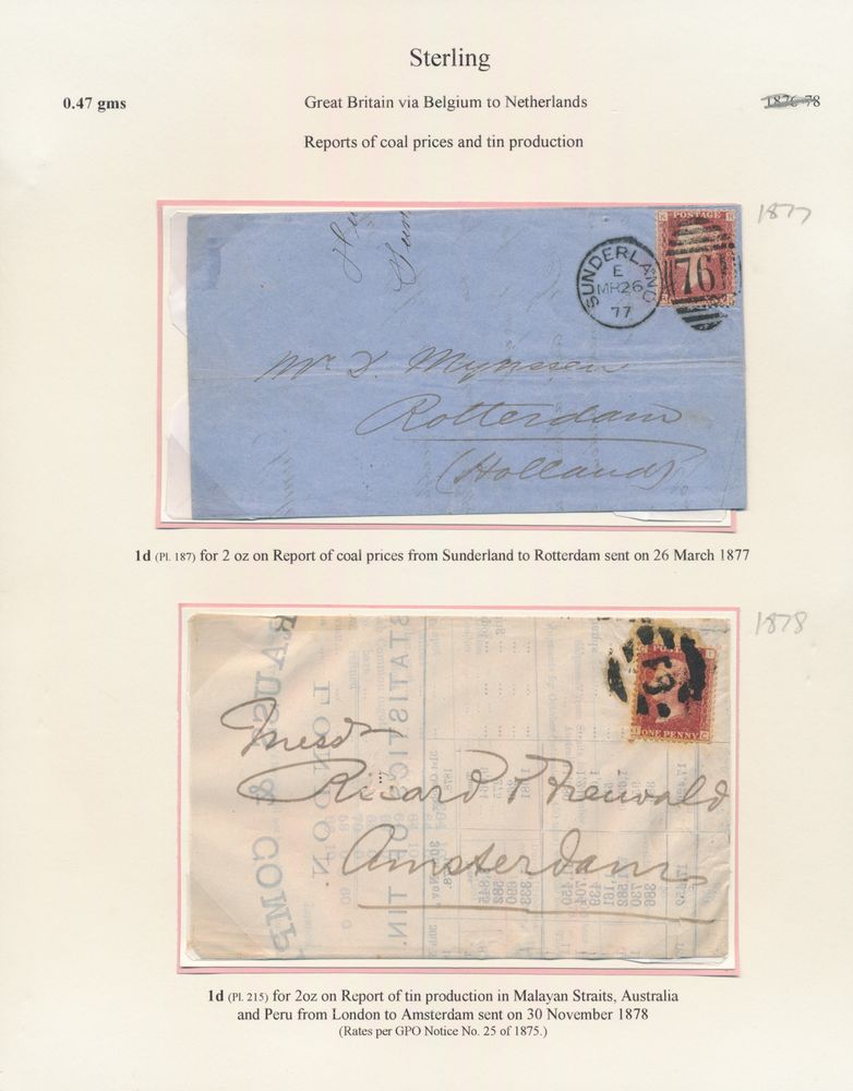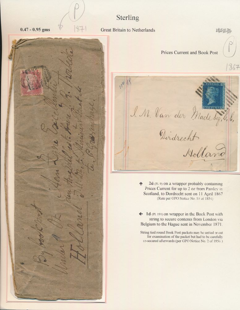 3466 image1867/1878 Interesting accumulation of 5 postal items to the Netherlands, including price lists, Book Post with descriptions, franked with one Penny Red and two Pence Blue, vf(Image 1) (Image 2) (Image 3)