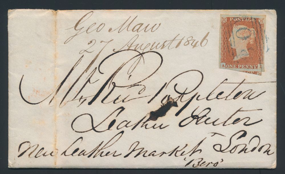 3461 image1846, (SG) N° 8, on letter with contents from Bishop Auckland to Hull 26/08/1846. Full margins 1 P redbrown stamp (slightly nicked), very nice blue numeral obliteration 80 of Bishop Auckland (SG stamp ++£180).(Image 1) (Image 2)