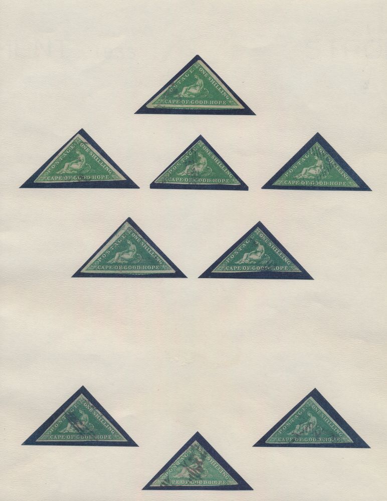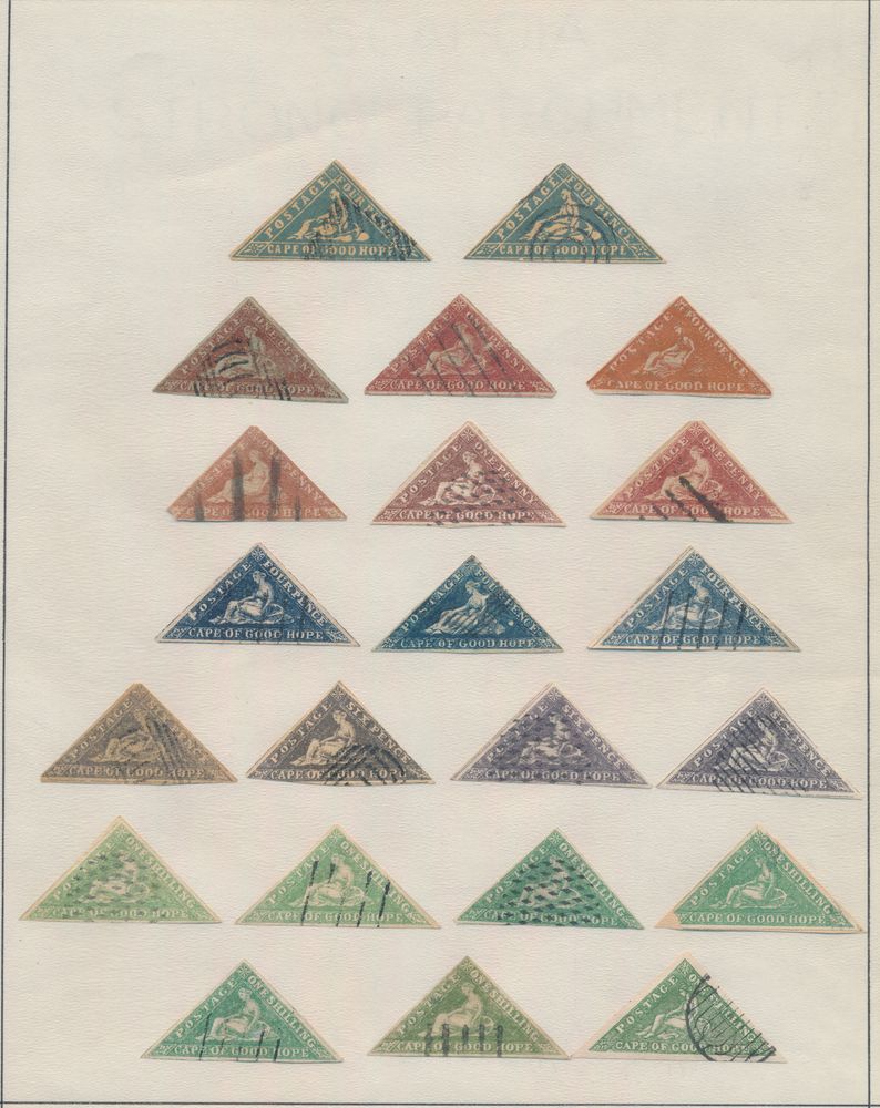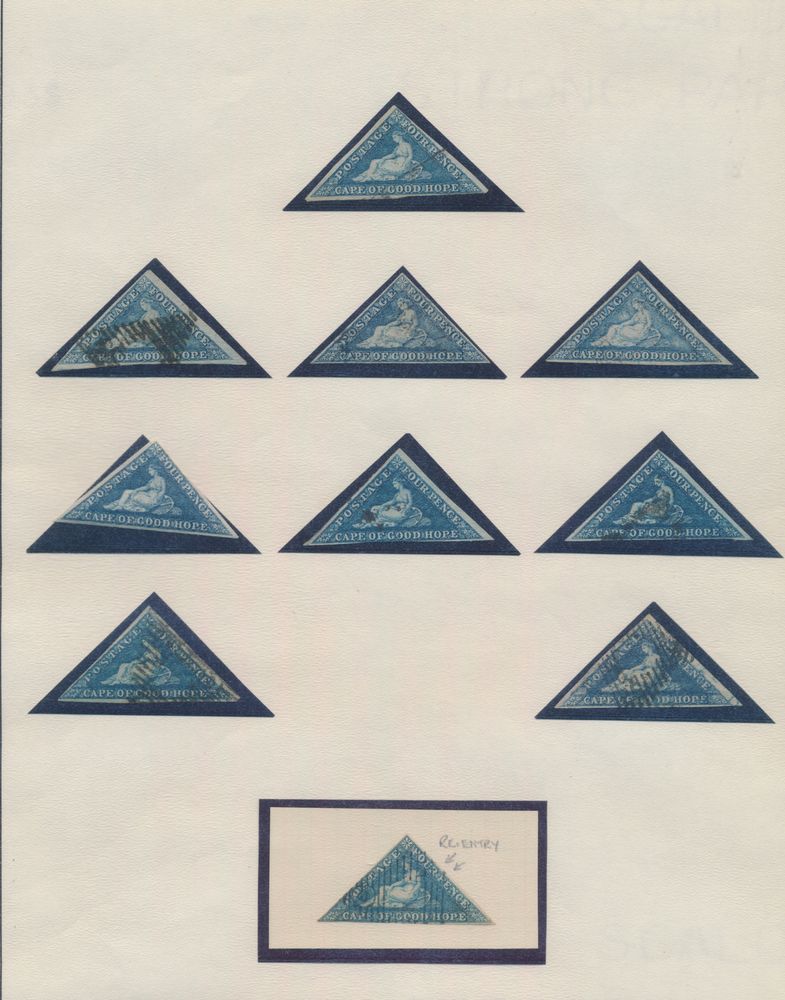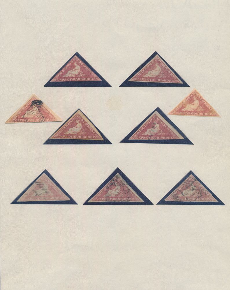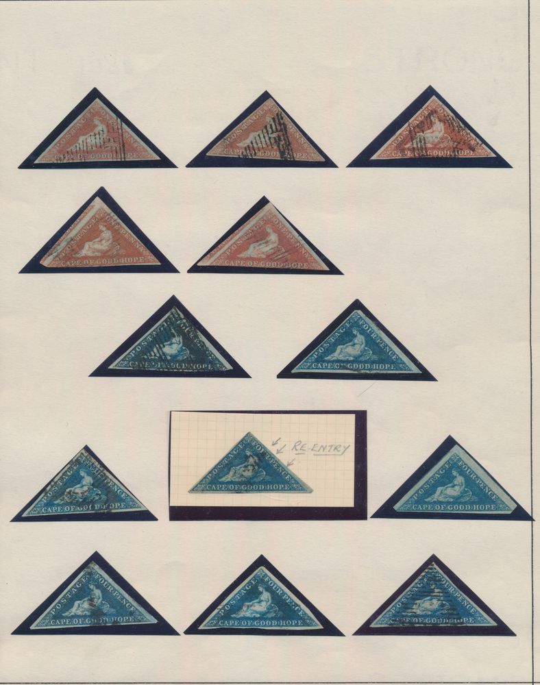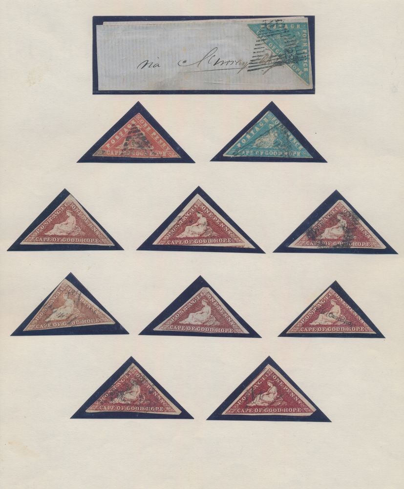 3551 og/0 image1853/1864, rare BEAUTIFUL collection of triangles, including wood-blocks and 4d pale milky- blue 2x w.v. 1x on fragment, nice pairs, some reventries, several highly listed ex., to be checked on colours. (Eg 6d slate-lilac 2x), 94 genuine items + page of forgeries added for reference, ENORMOUS catalogue value, vf/f/To be checked.(Image 1) (Image 2) (Image 3) (Image 4) (Image 5) (Image 6) (Image 7) (Image 8) (Image 9)