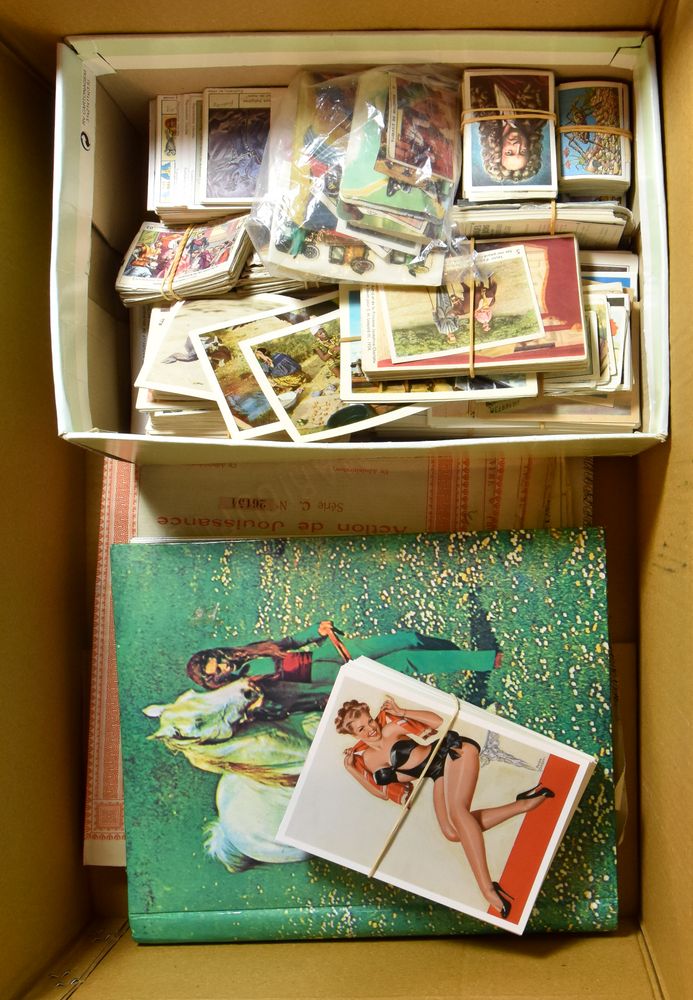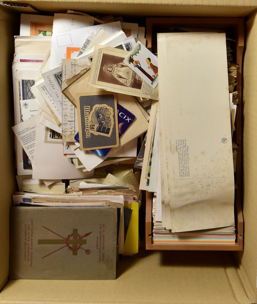 chromolithographs, film stars and photos, a few telecards, album death notices and loose coins, etc.(Image 1)