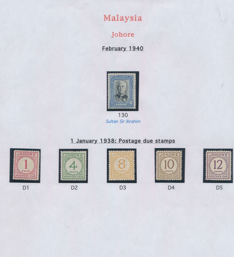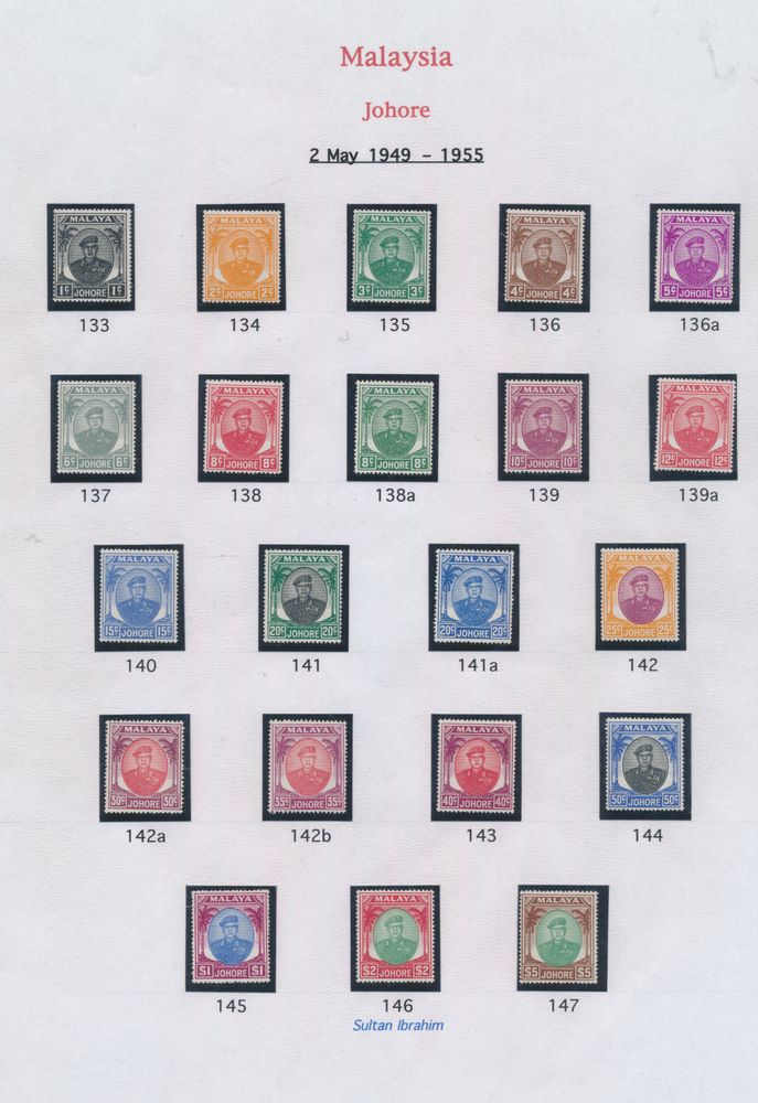3612 nh/og image1940/45 Malaysia Johore Sultan, Sir Ibrahim N° 130 and 133/747 mint and 1938 Strafport with tinted gum and very light trace of *, vf/f (SG £ 385)(Image 1) (Image 2)