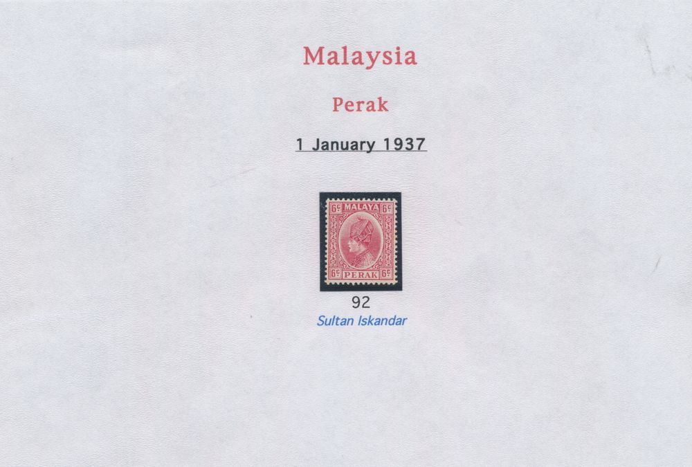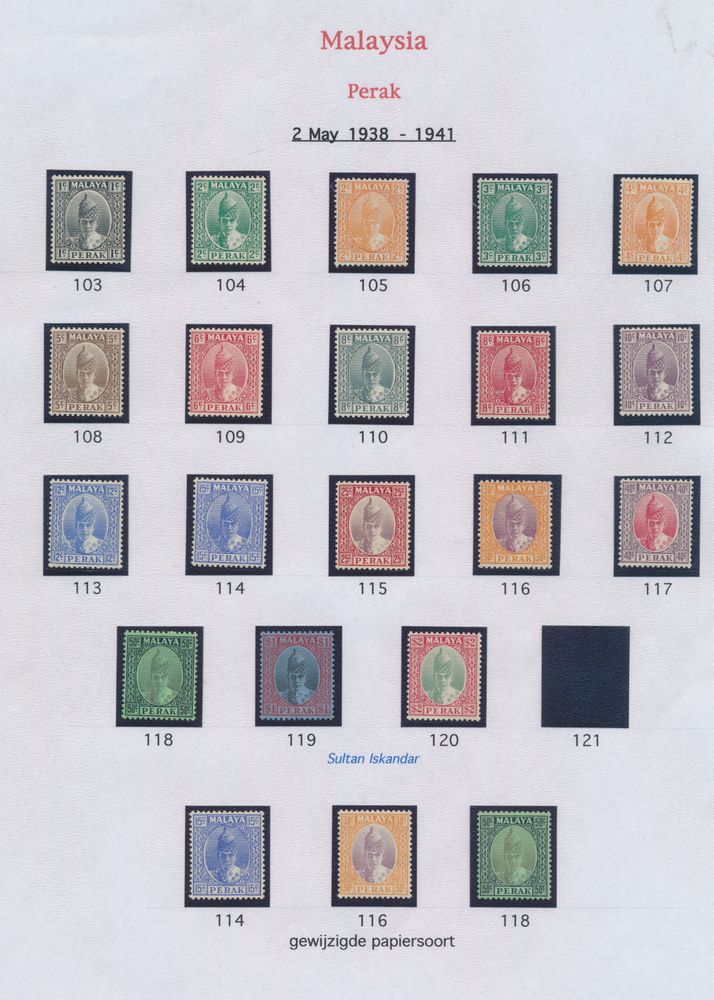 3609 nh image1937/1941 Perak, N° 92 and 103/21 'Iskander' slightly tinted gum, vf/f (SG £ 1,115)(Image 1) (Image 2) (Image 3)