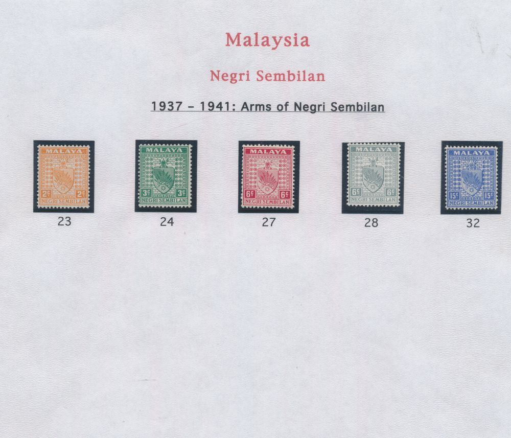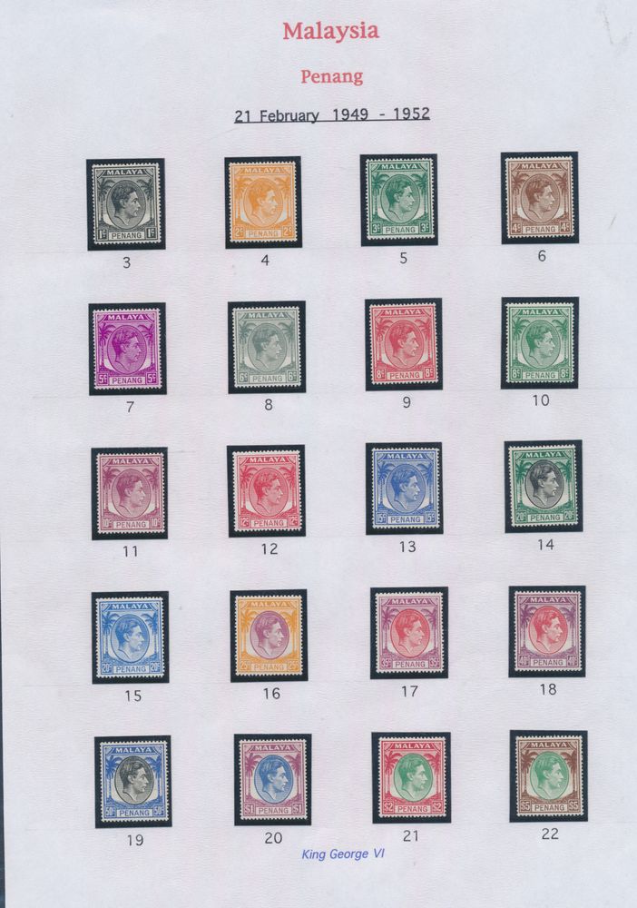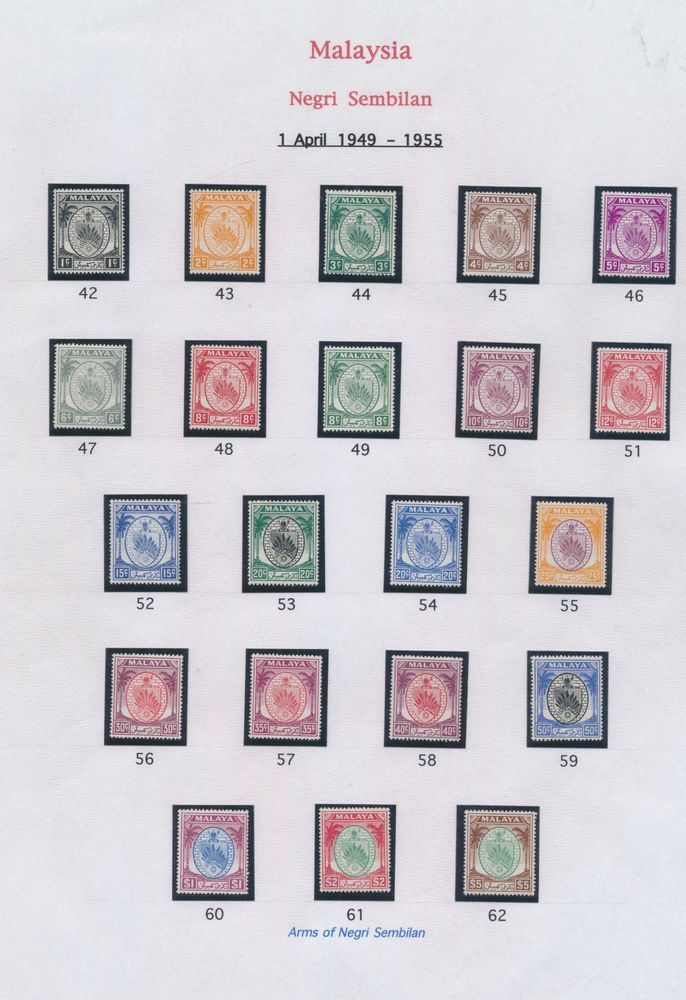 3607 nh image1936/1955, Negri Sembilan N° 23, 24, 27, 28, 32 and 42/62 George VI period and Penang N° 3/22 both postage series and some previously issued stamps, vf (SG £360)(Image 1) (Image 2) (Image 3)