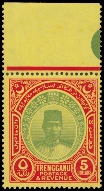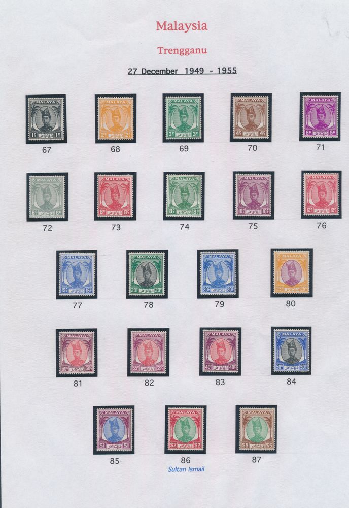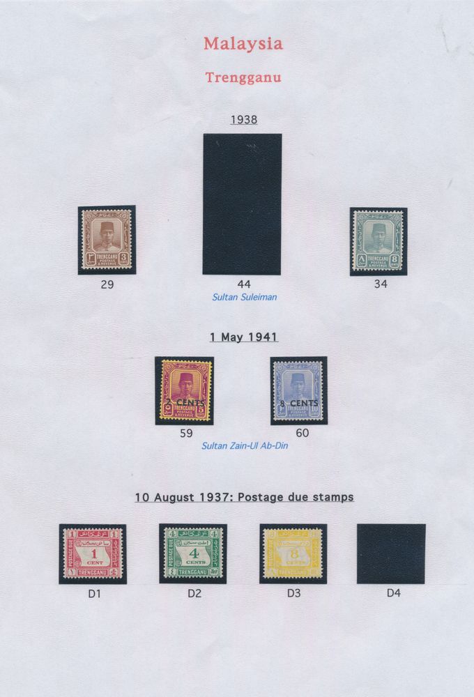 3611 nh image1937/1955 Trengganu N° 29, 34, 56, 90, 67/87 and Penal Stamp D 1/4 'Sultan Suleiman, Sultan Ismail and rare penal stamp series', first 4 stamps with lightly tinted gum, vf (SG £ 444)(Image 1) (Image 2) (Image 3)