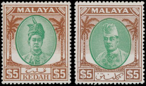 3614 nh image1950/1955 Sultan Badishah and Sultan Ibrahim, Kedah N° 76/90 and Kelantan N° 61/81, vf (SG £ 360)(Image 1) (Image 2) (Image 3)