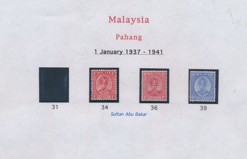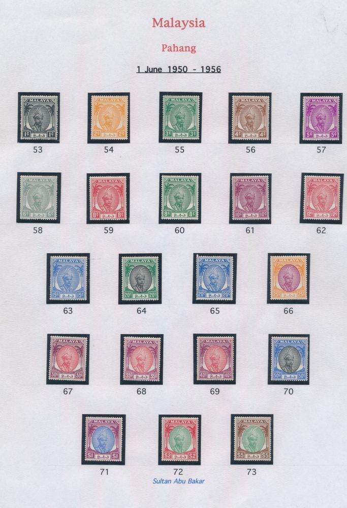 3608 nh image1937/1956 Pahang N° 31, 34, 36, 39 and 53/73 Sultan Abu Bakar, vf (SG £ 275)(Image 1) (Image 2) (Image 3)