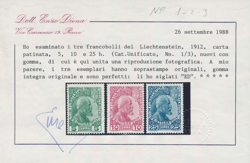3699 nh imageN° 1/3 "1912/15 Prince John II" on coated paper, photo certificate Diena, vf (Yv. €880)(Image 1) (Image 2) (Image 3)