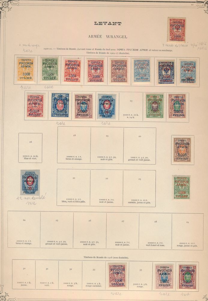 3698 nh/og/0 imageRussian Levant, 1863/1921 Collection on album leaves from n° 1 (with sign), various better stamps expertised, including Yv. n° 4, 5, 17, 62, 89, also Wrangel Armee, vf/f/to be checked(Image 1) (Image 2) (Image 3) (Image 4) (Image 5) (Image 6) (Image 7)