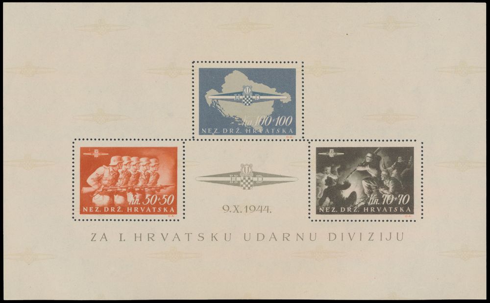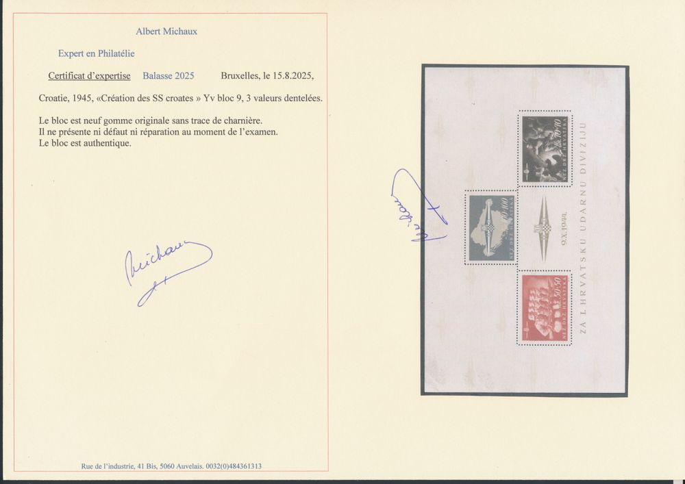 3693 nh imageBL 9 "1945 - Croatian SS" with certificate, vf (Yv. €2,000)(Image 1) (Image 2)