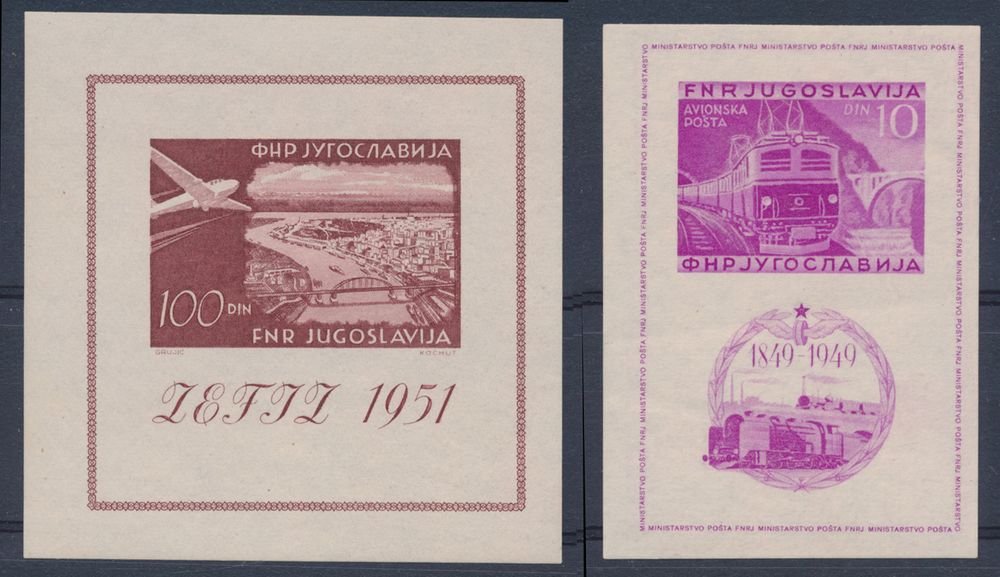 3691 nh imageBL 3 and 4 "1949 - railway imperforate" and "1951 - 100d. Zagreb", both very slightly tinted gum, vf/f (Yv. £540)(Image 1)