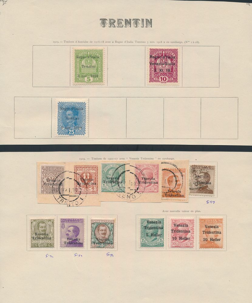 3681 og/0 image1919 Trentin, small collection on album leaf (leaves) including Yv N° 24 cancelled, 25/27* (expertised Bolaffi), vf (Yv € 240)(Image 1)