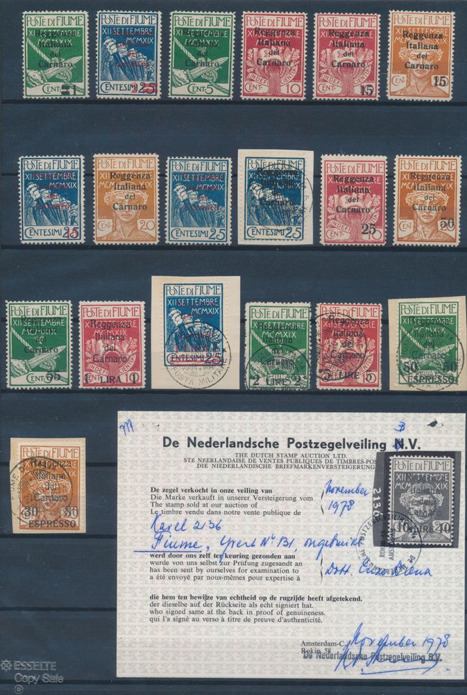 3684 og/10 imageFiume, 1920, small beautiful collection Reggenza del Carnaro with Yv. n° 114/31 and express 3/4, various stamps with sign, n° 131 certificate, 1 cheaper stamp thin spot, vf (Yv. €1,130)(Image 1) (Image 2)