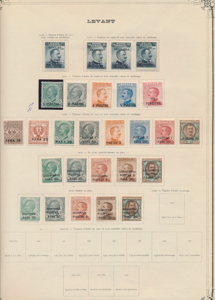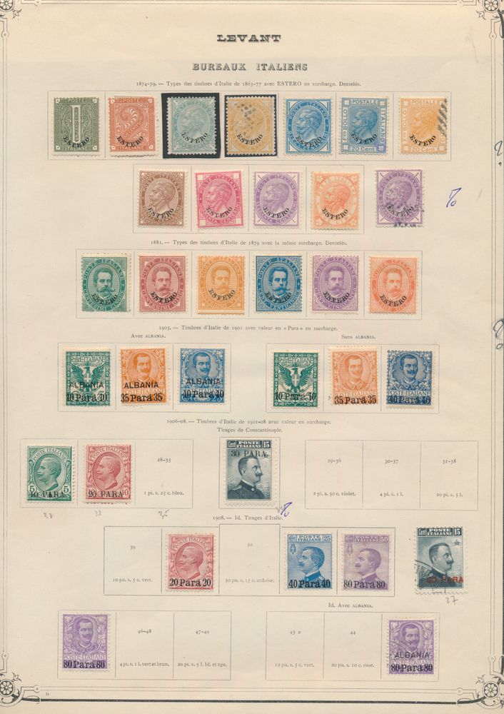 3682 og/ng/0 image1874/1923, collection on album leaves (leaves), with Estero including Mi N° 3 (*), 5(*), Albania, Levant, including Mi N° 41*, Janina, Constantinopoli, Smirne, substantial catalogue value, vf/f.(Image 1) (Image 2)