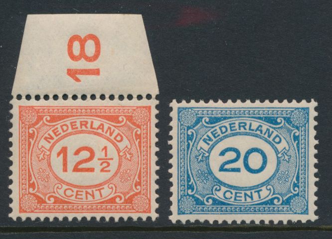 "40c." with minor gum damage, "12c. 1/2" in pair, vf (NVPH +£300)(Image