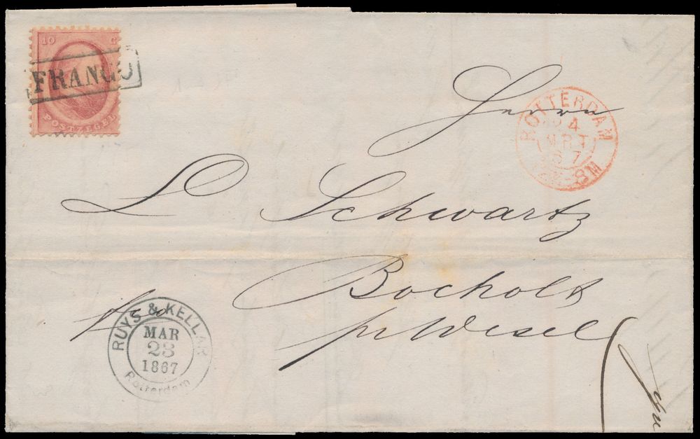3792 image1867 Business letter (invoice) from Rotterdam to Bocholt with private address, departure stamp franked with n° 5, vf(Image 1) (Image 2)