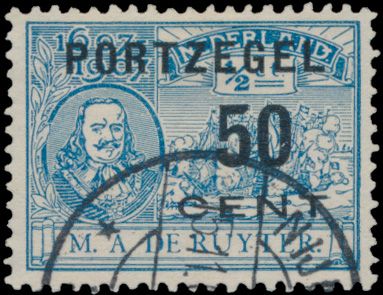 3784 0 imagePenalty postage P42f "1907 - De Ruyter 50c." with "white line through D of Nederland", vf (NVPH €195)(Image 1)