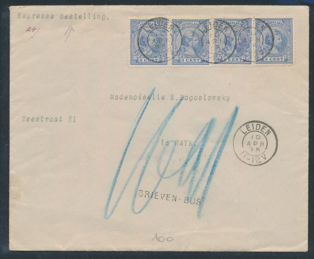 3799 image1895 Express letter from Leiden to The Hague with n° 35 (4x), letterbox cancellation, attractive item, vf(Image 1) (Image 2)