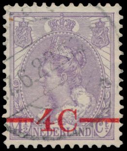 3785 0 imageN° 106P "1921 - 4c. on 4 1/2c. violet" with broken 4, vf (NVPH €50)(Image 1)