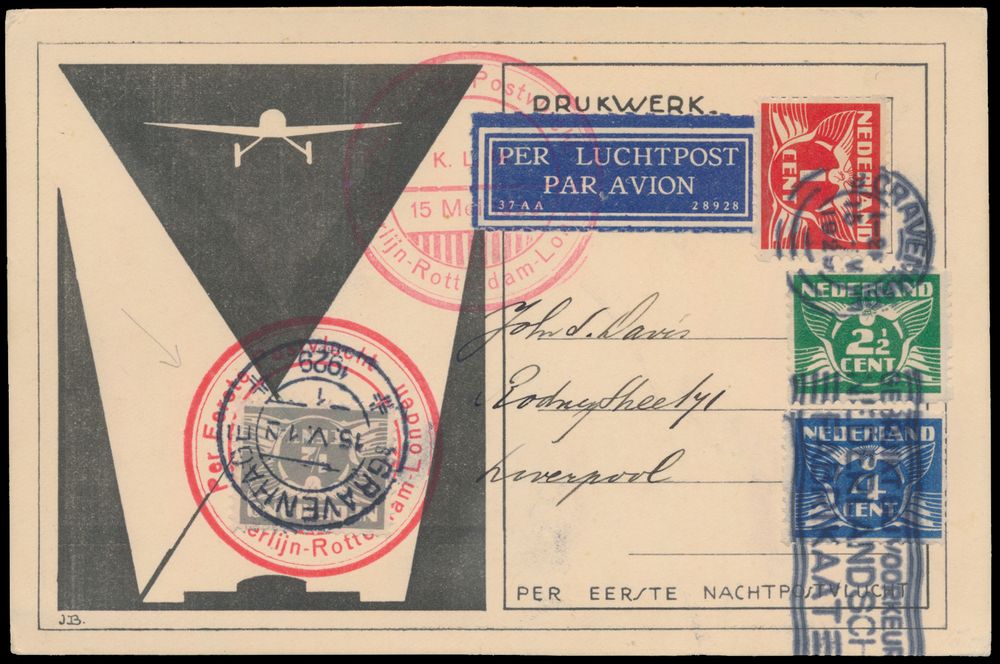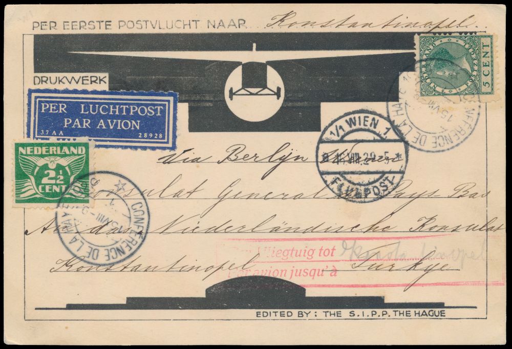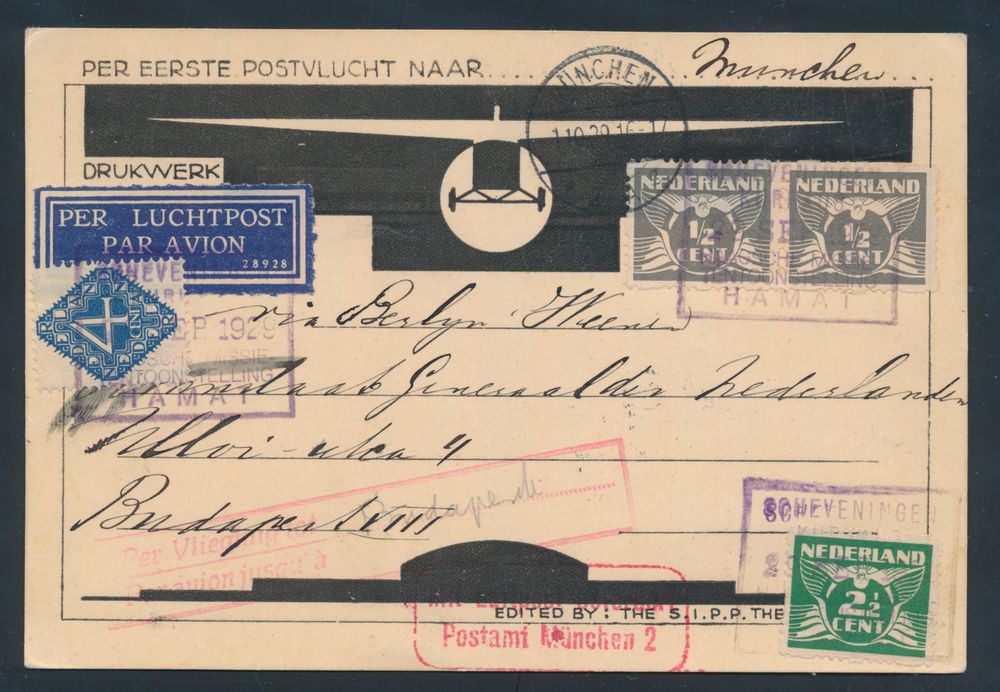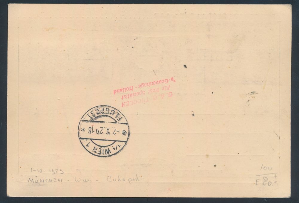 1929 Printed card by first airmail flight to Munich, Vienna,