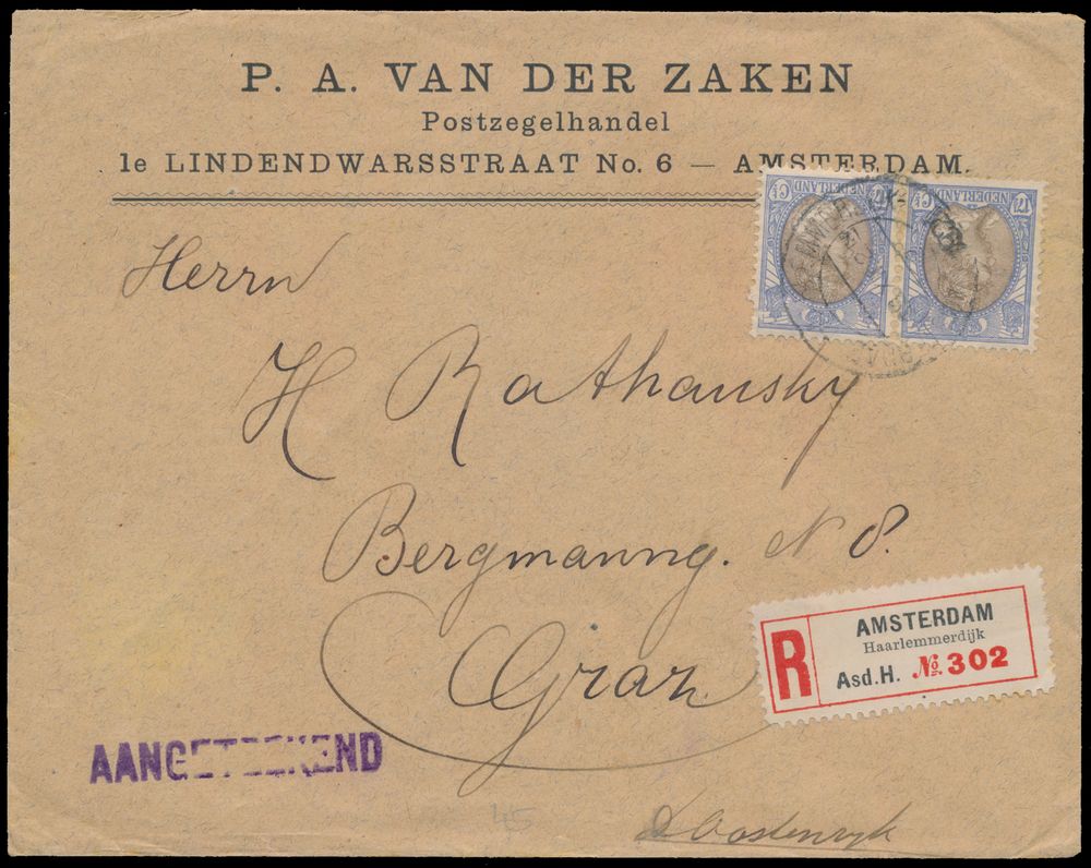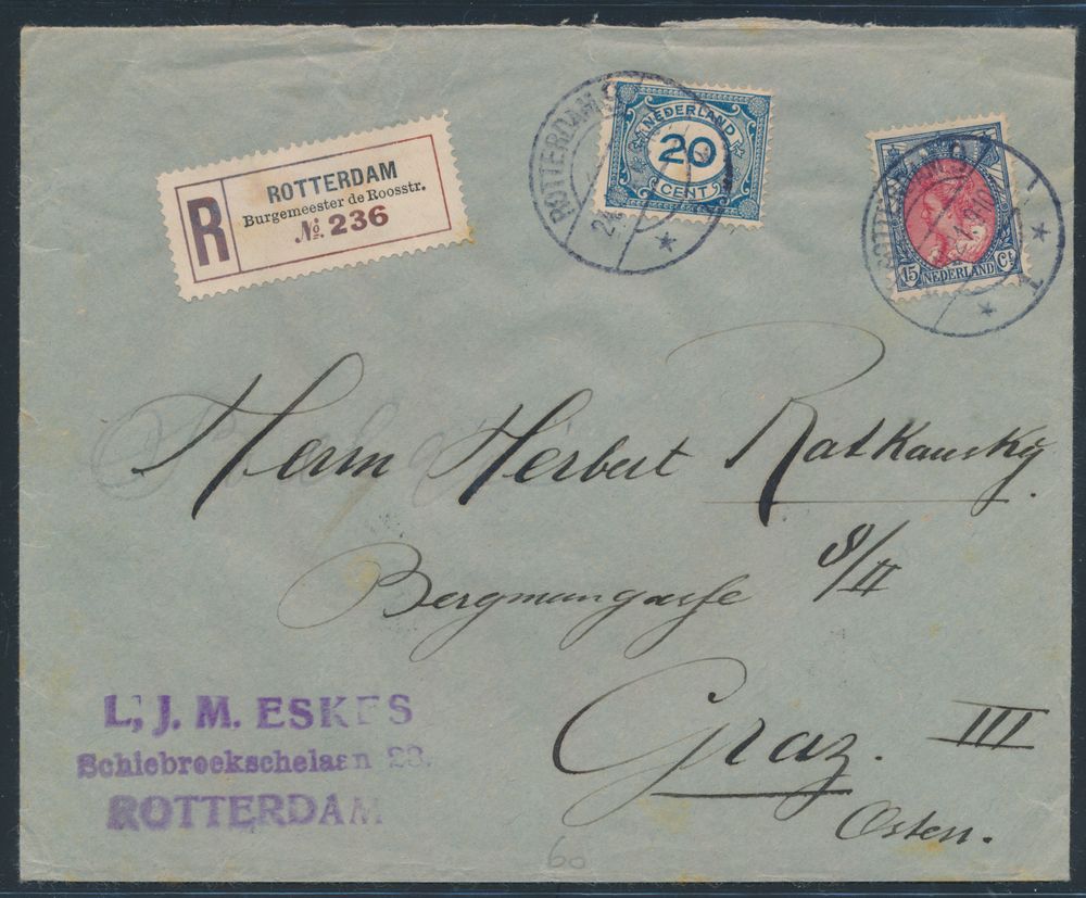 1921 R-letter (white strip) from Rotterdam to Austria with n°