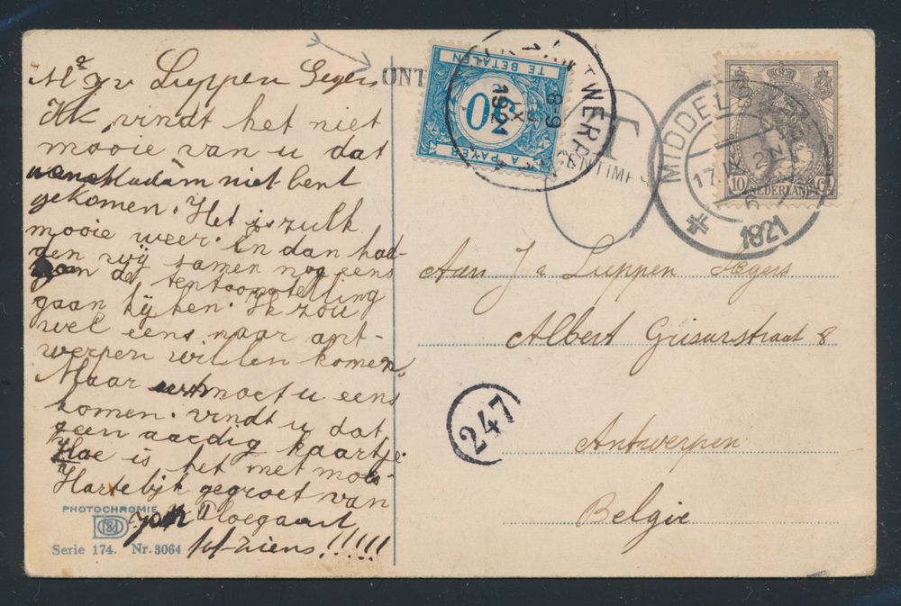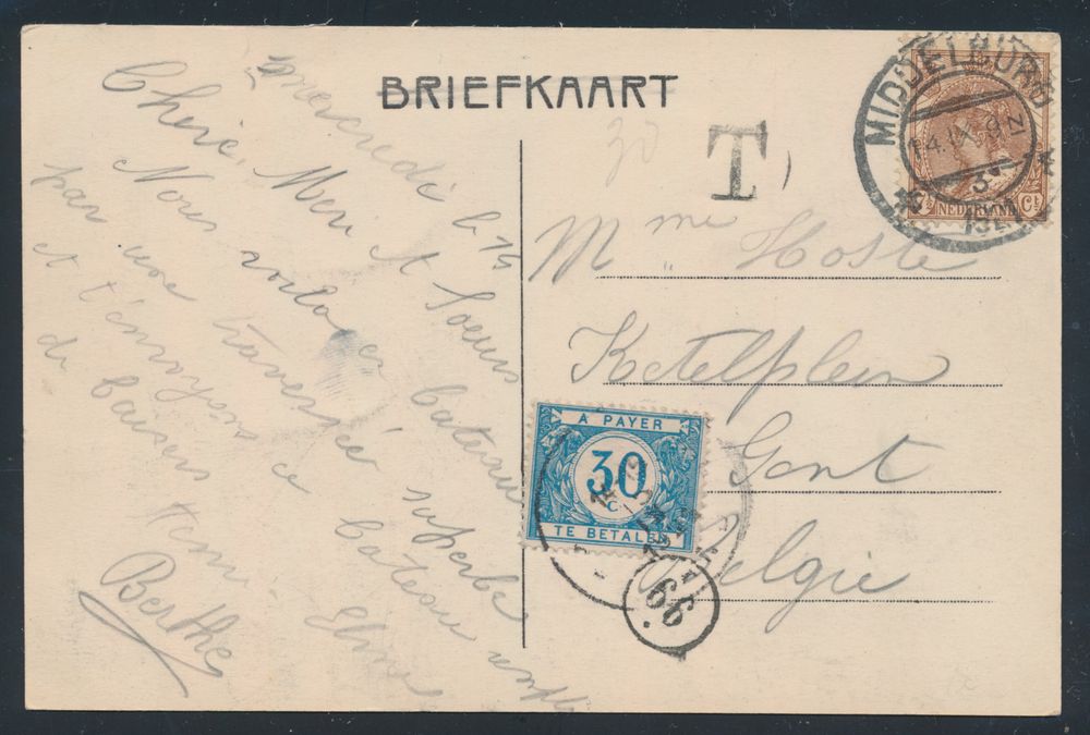 Middelburg to Antwerp insufficiently franked with "10c. fur collar", therefore with Belgian penalty postage stamp "30c.", vf(Image 1)