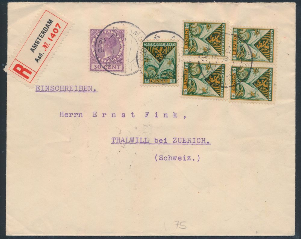 1926 R-letter from Amsterdam to Switzerland with franking n°