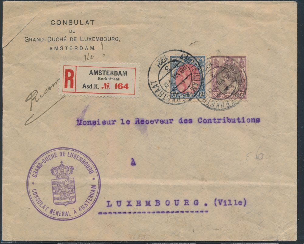1921 R-letter consulate Luxembourg, Amsterdam to Luxembourg