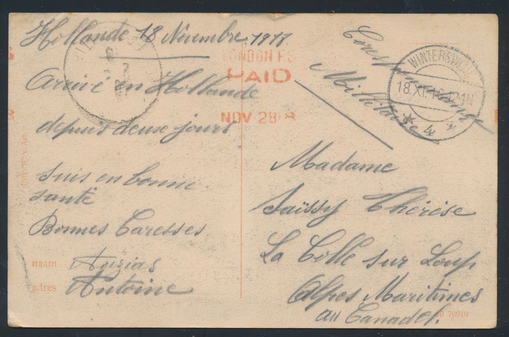 1918 (Nov.) WWI, picture postcard Wintersdijk from transit