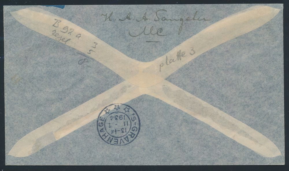 3900 image1934 Airmail letter from Batavia to The Hague "by Postjager" franked with n° 185 and LP 18, vf(Image 1) (Image 2)