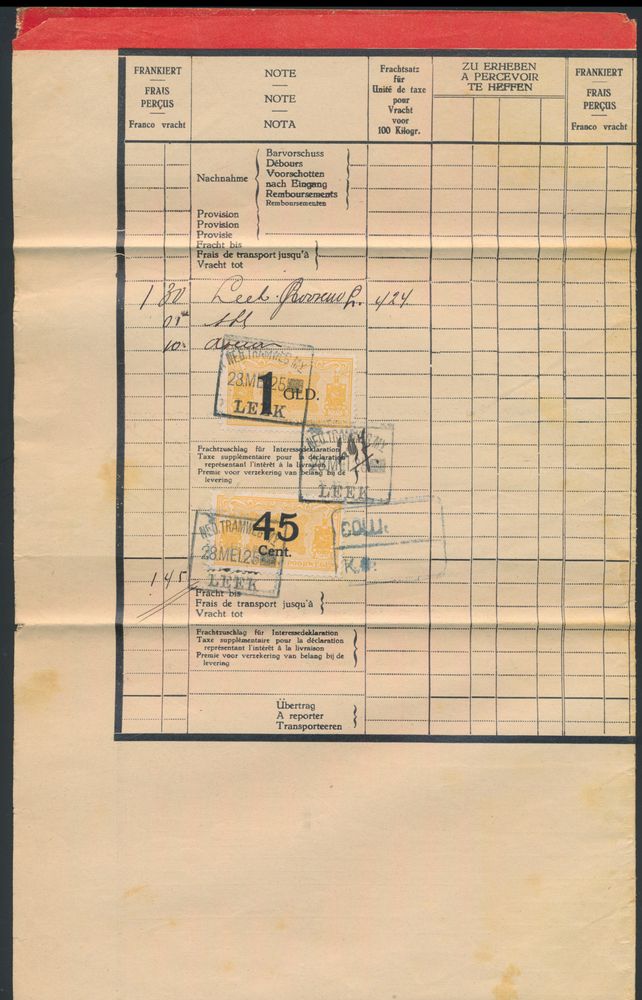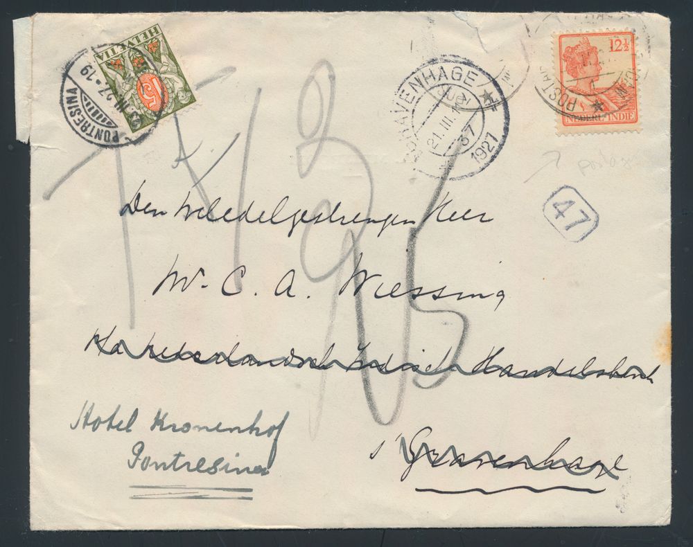 3894 image1927 Letter by post agent, Rotterdam to The Hague, forwarded to Pontresina (Switzerland), where it was stamped with a penalty postage, somewhat roughly opened, vf/f(Image 1) (Image 2)