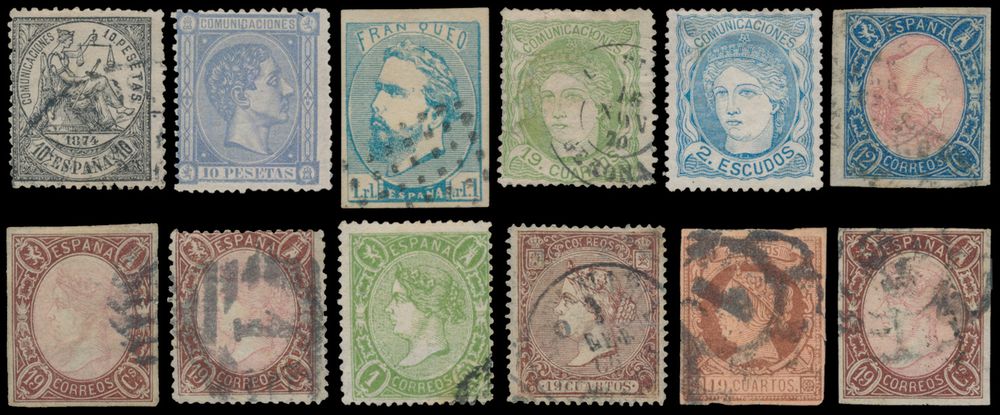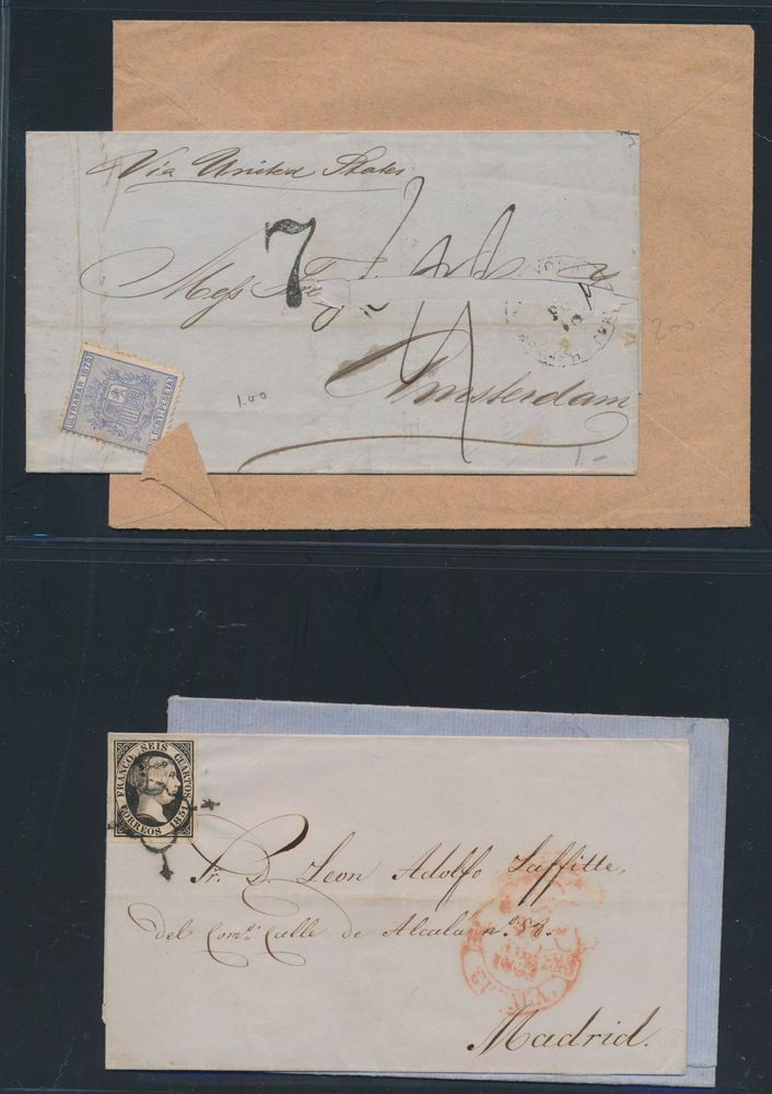 4088 0 imageN° 13 "1852 - Isabella II - 12c. lilac", 2 shades including part "neighbour seal", vf (Yv. +€320)(Image 1)