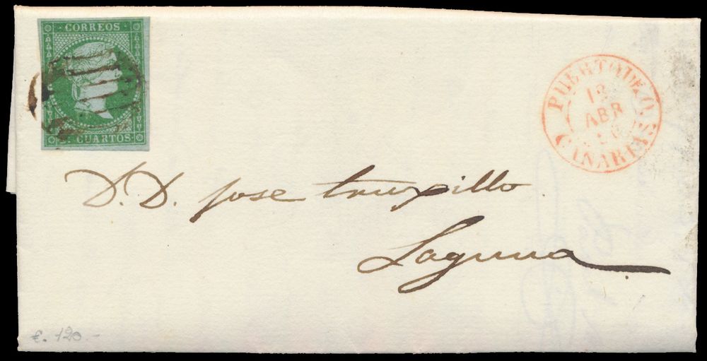 4093 image1856 Complete letter Tenerife to Laguna, sent on the island, franked with "2c. green" (Yv. n° 38), rare, vf(Image 1) (Image 2)