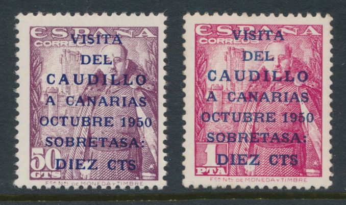 4090 nh imageN° 806A/807A "1950 - Caudillo a Canarias", vf (Yv. £500)(Image 1) (Image 2)