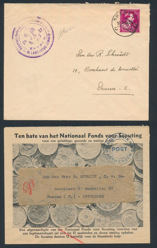 4145 imageGroup of postal items and various items relating to Belgian Scouts, vf/f(Image 1) (Image 2) (Image 3)