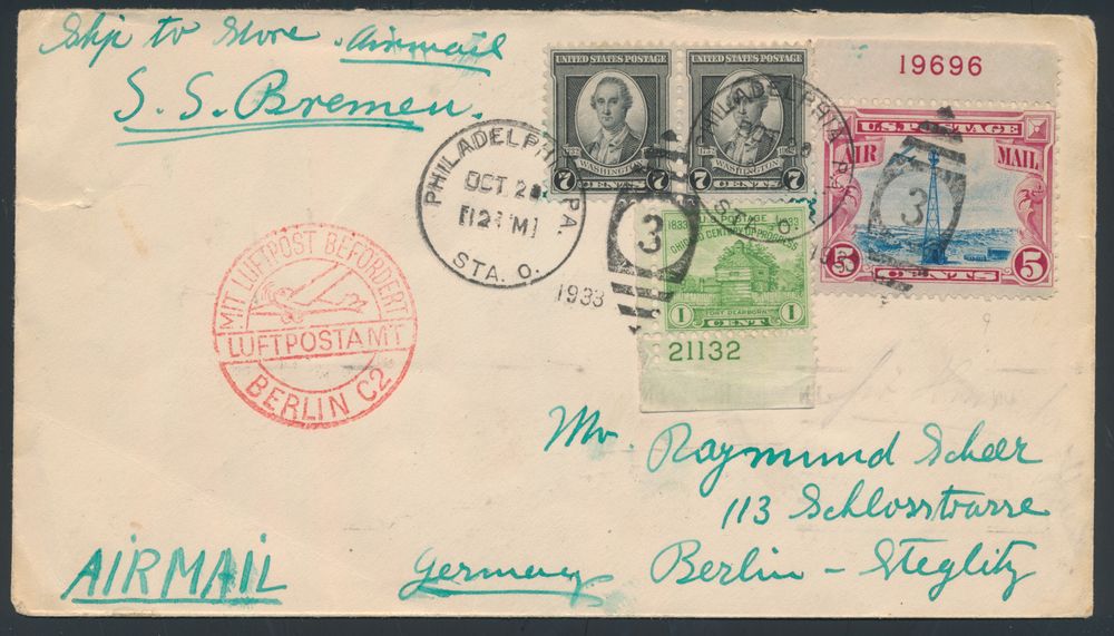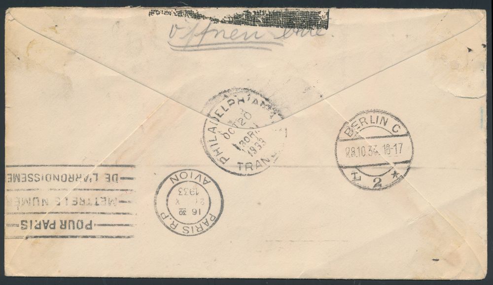 20.10.1933 cover from Philadelphia, PA to Berlin which the