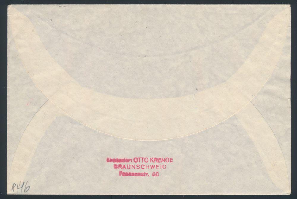cover sent from Braunschweig to New York and carried aboard the "Europa", franked with both airmail and normal stamps all tied by special postmark, catapult flight cachet in blue alongside, vf(Image 1)