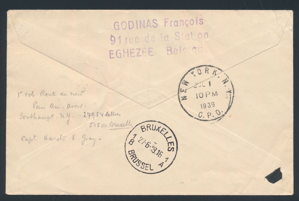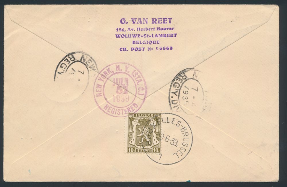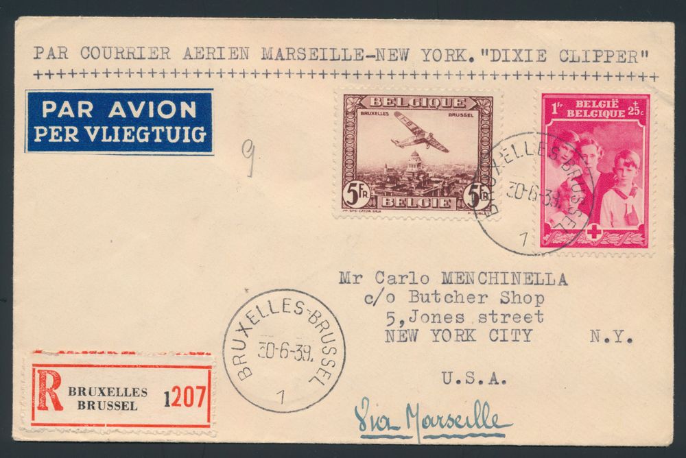 4214 imageBelgium, PA 4 + n° 500 on registered letter from Brussels 30-6-39 to New York via Marseille (written), 'Dixie Chipper' + n° 420 on the back, vf(Image 1) (Image 2)