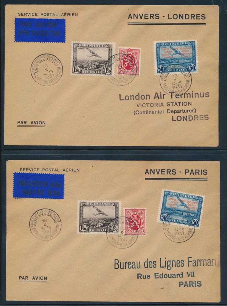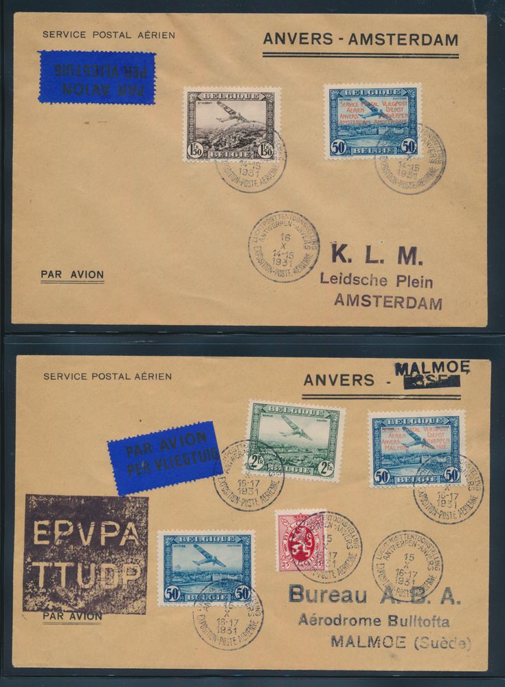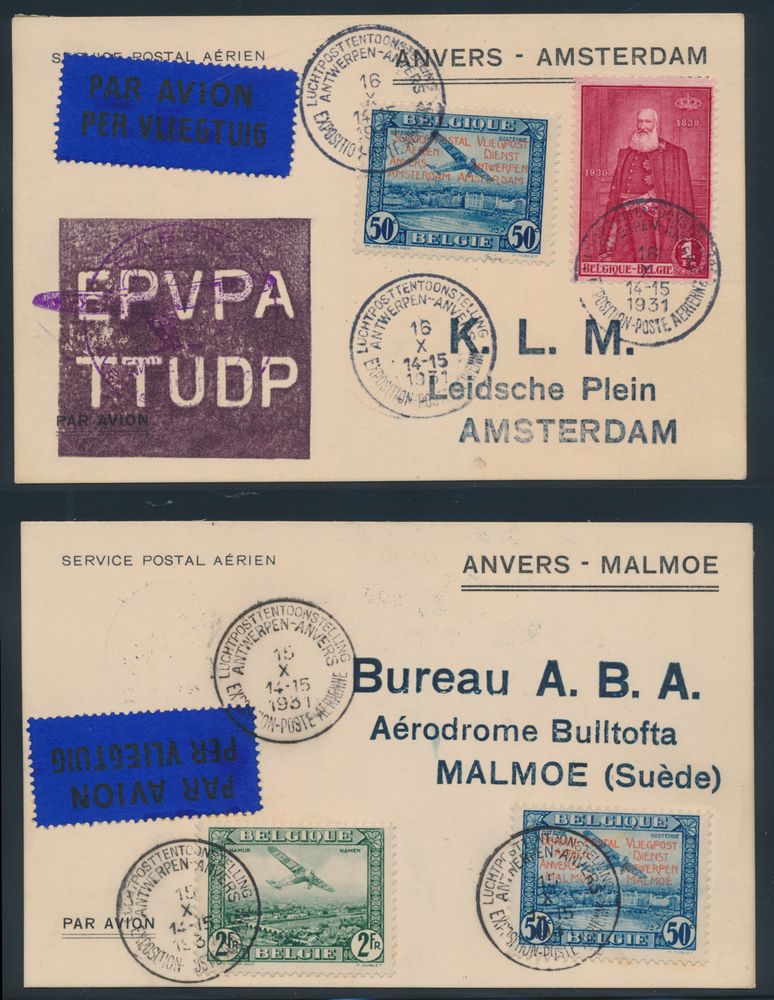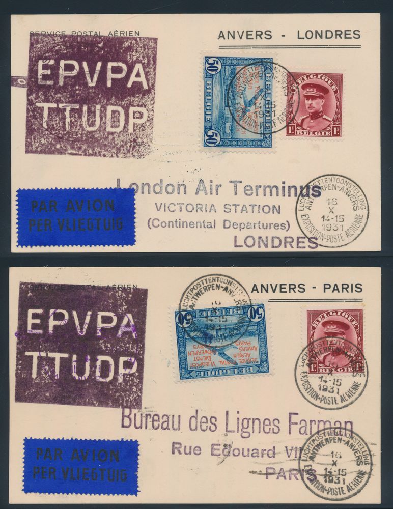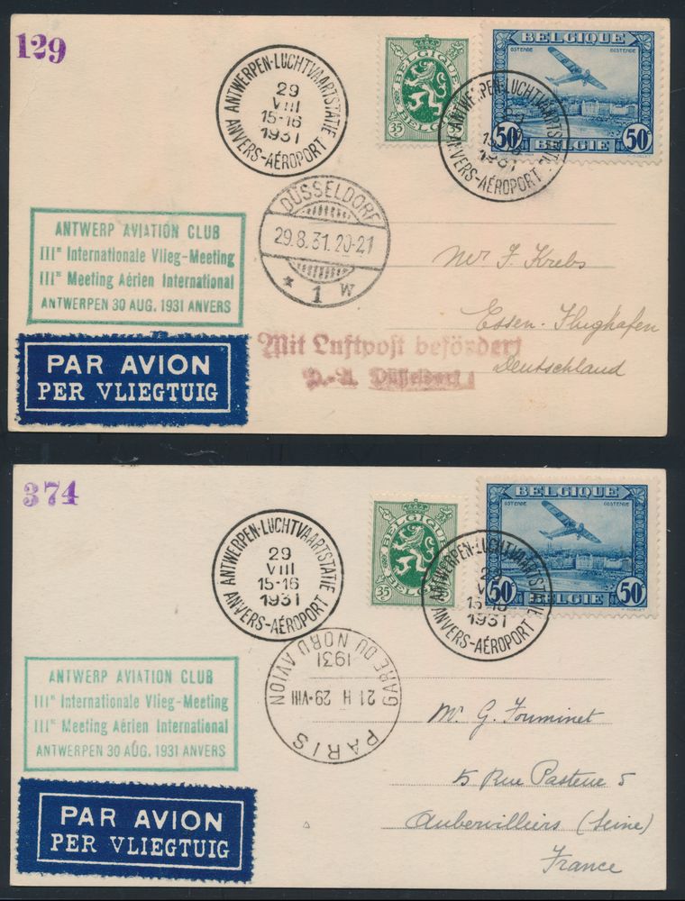 4205 imageBelgium, 1931 Antwerp Aviation Station, 2 photo cards with cancellation 'Antwerp aviation club III° Int. flying meeting' to France and Germany, vf.(Image 1) (Image 2)