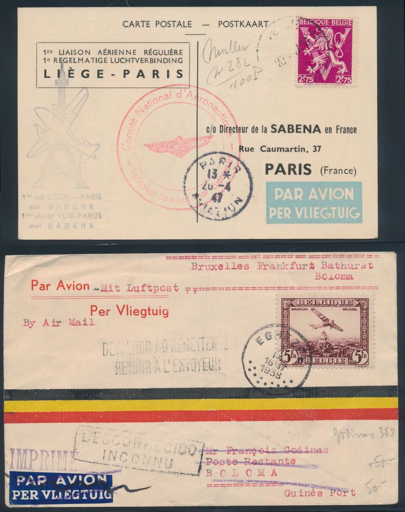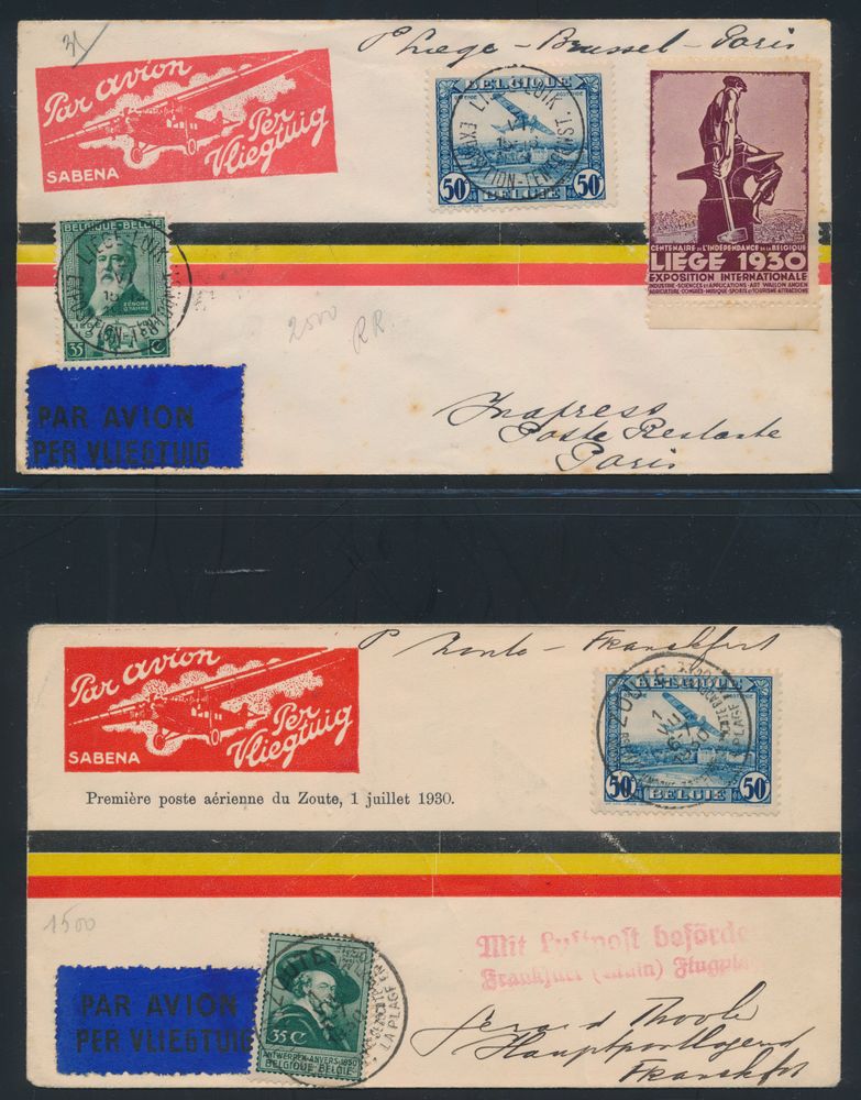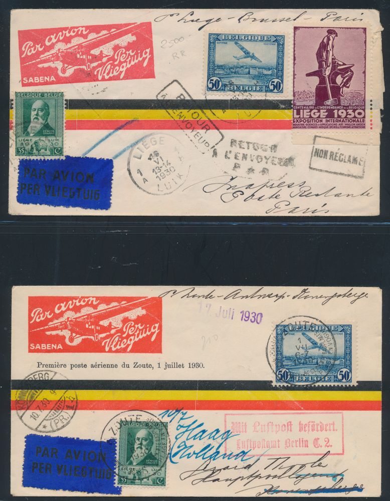 4220 imageBelgium, 4 letters each with PA 1 + N° 299 or 300 and 2x vignette Liège 1930, all with red Sabena illustration (pre-printed), various cancellations, vf/f.(Image 1) (Image 2)
