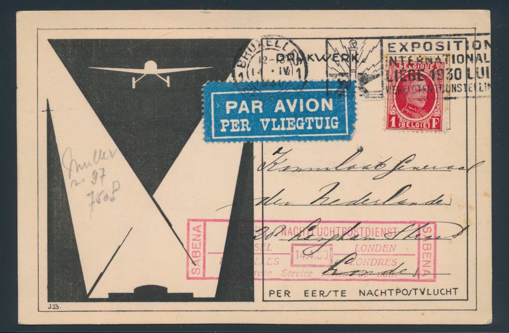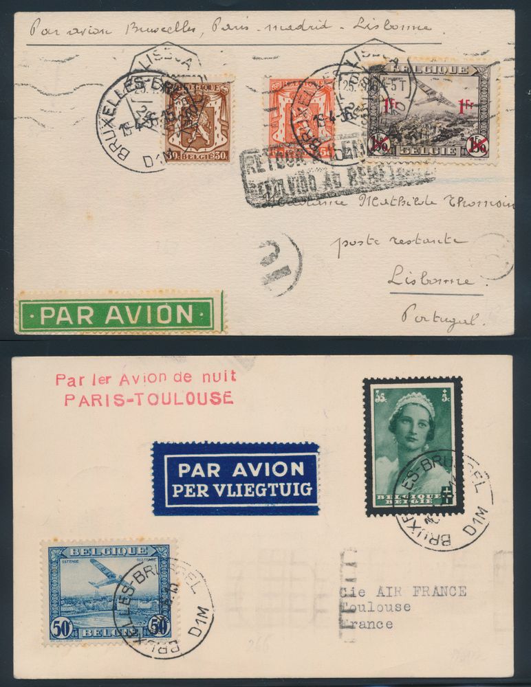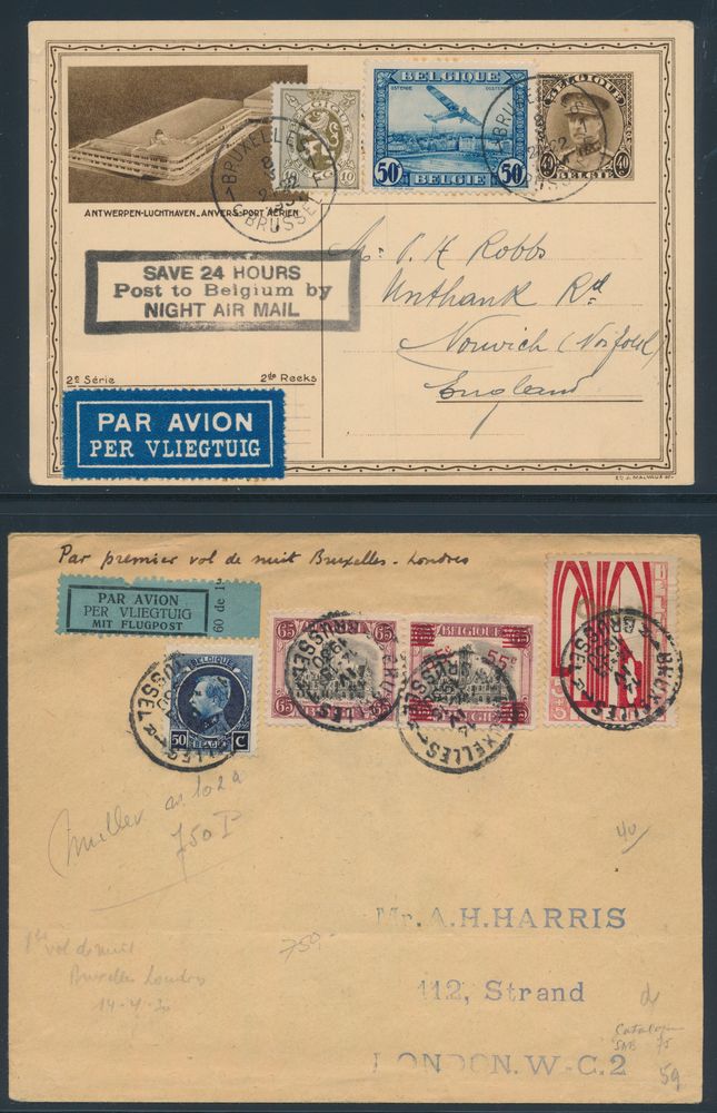 4204 imageBelgium, 1930/31 Night airmail Brussels-London, 1 letter and 2 cards, various postage stamps and cancellations, vf(Image 1) (Image 2)