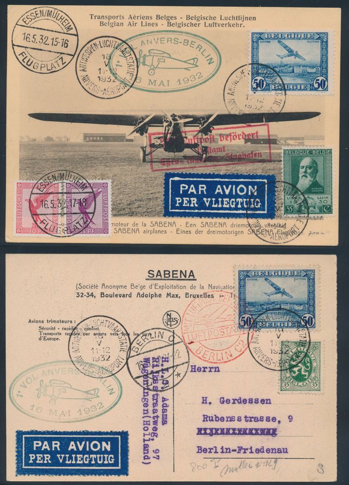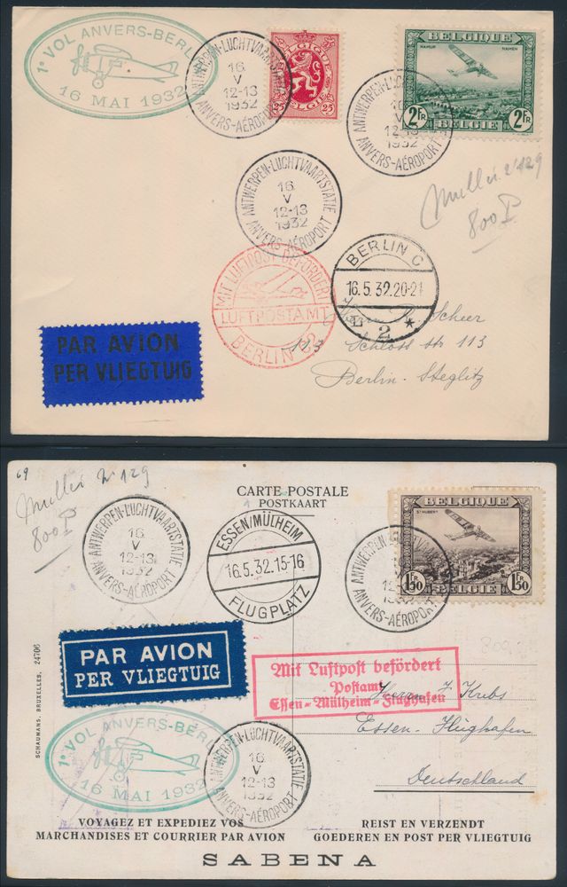 4207 imageBelgium, 1° Flight Antwerp-Berlin 16 May 1932, 4 postal items with various postage cancellations and postmarks, vf(Image 1) (Image 2)