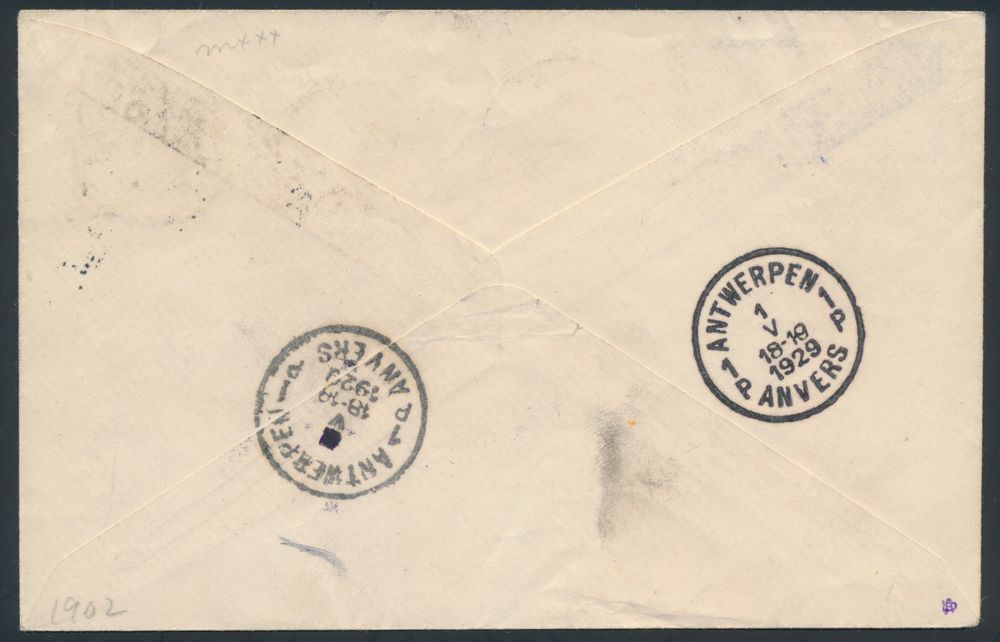 4252 image1.5.1929 N° 29.5/02 (Mi. Zeppelin Specialised), Hamburg - Antwerp First Flight cover sent between the terminuses and franked with 10pf and 15pf airmail stamps, arrival c.d.s. on the back, vf(Image 1) (Image 2)