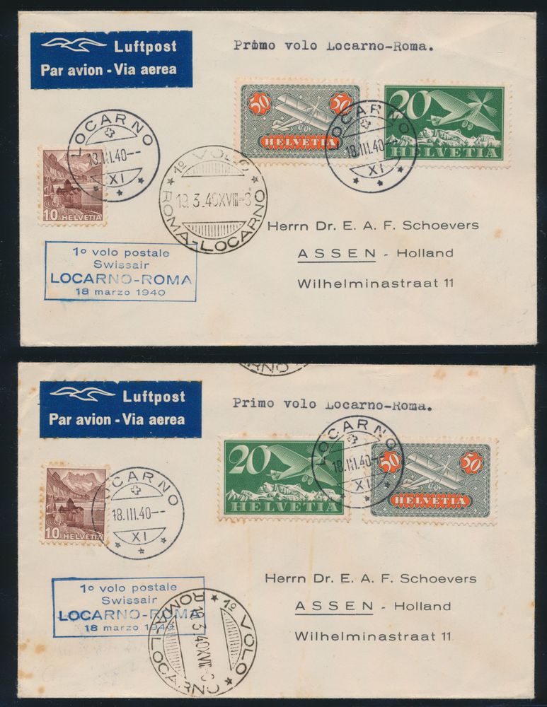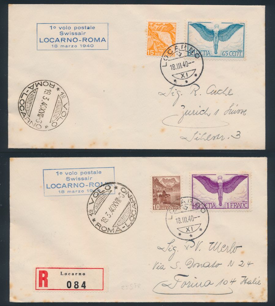 4368 image18.3.1940 SWISSAIR Locarno-Roma First Mail Flight lot of 4 covers one of which sent registered to Torino, Italy, various frankings, some foxing here and there but still a useful lot, f(Image 1) (Image 2)