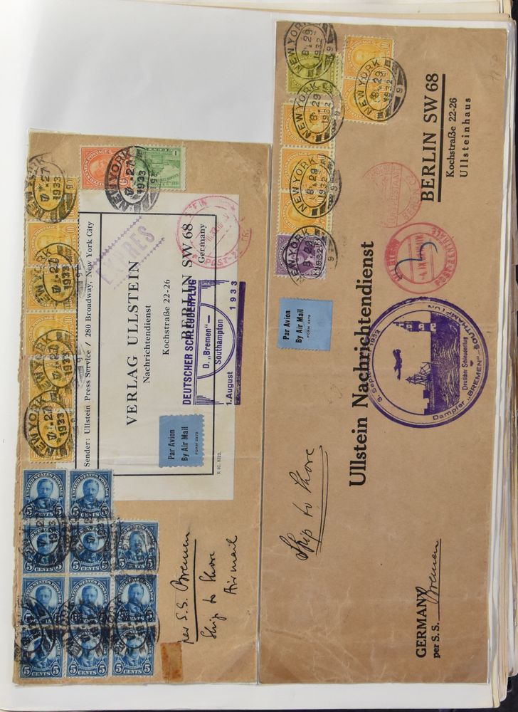 4387 imageFrance: 1930s (mostly) extensive airmail postal history collection consisting of 27 covers mounted and written up on pages, many better items throughout, should be inspected in order to be fully appreciated, vf/f(Image 1) (Image 2) (Image 3) (Image 4)